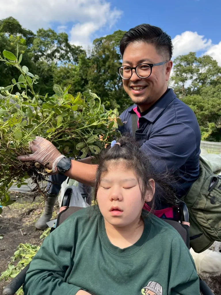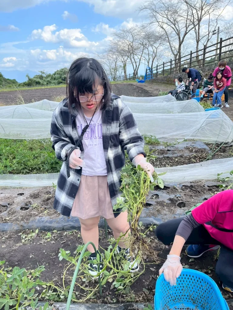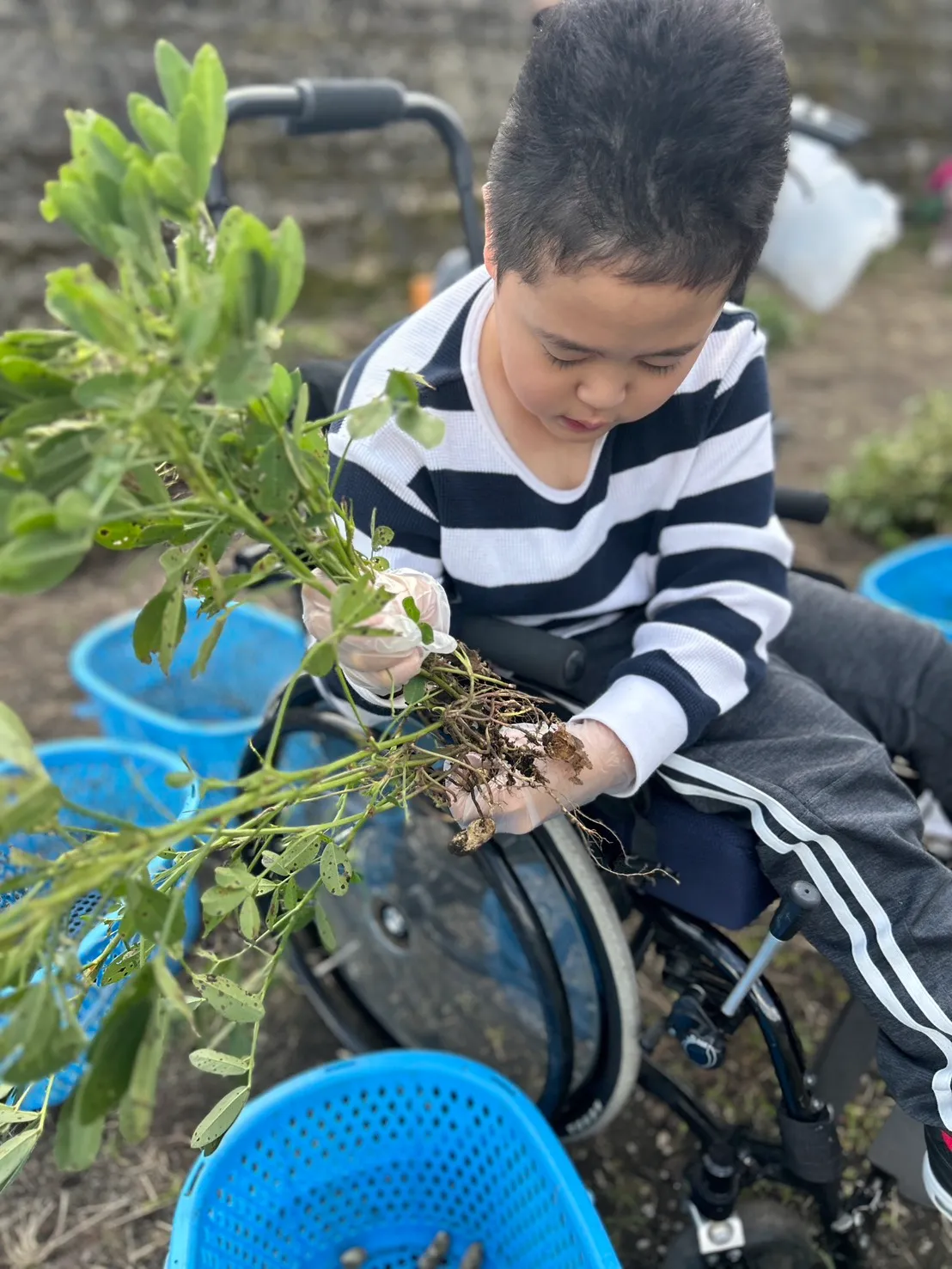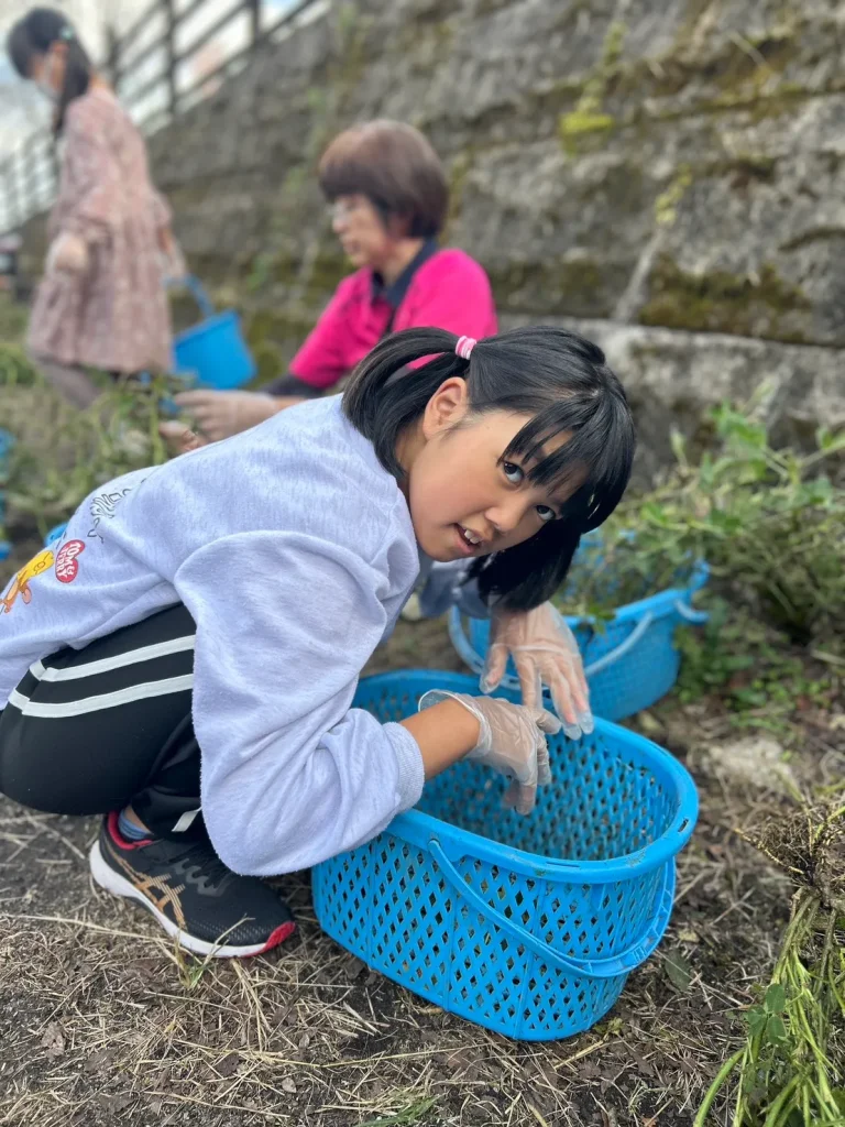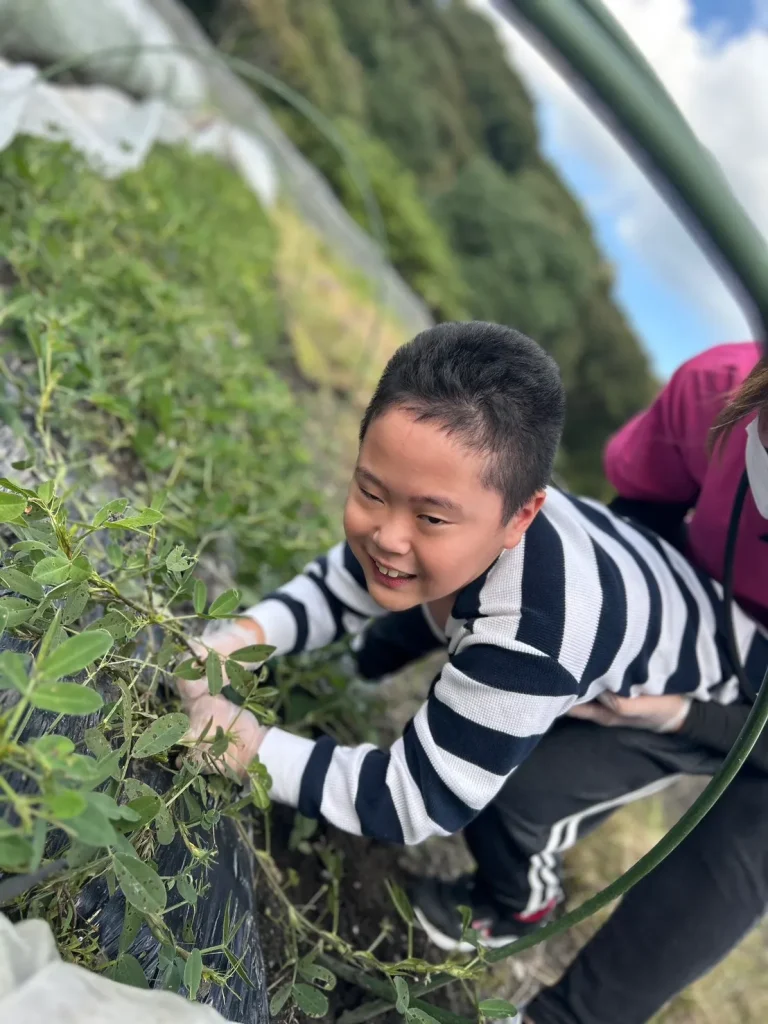 落花生の収穫体験では、土の中から出てくる実にみんな興味津々。