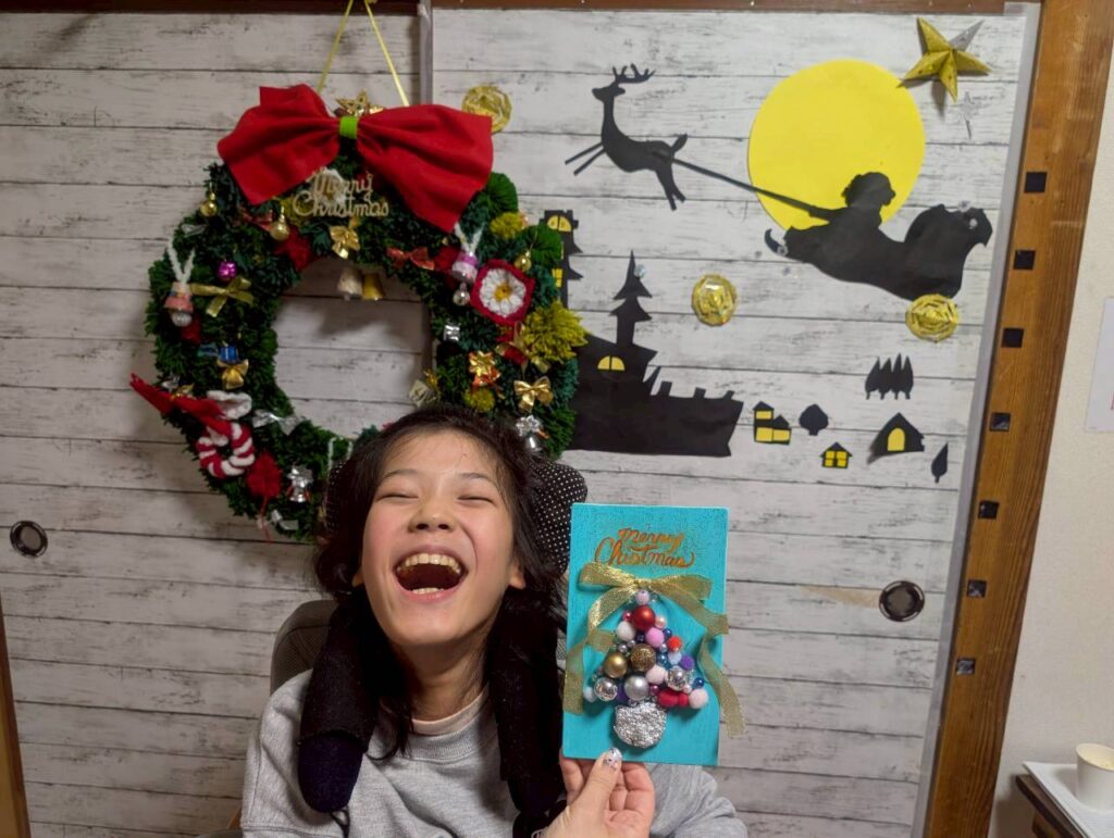 2025.12(生・医)クリスマスの制作活動! 2026 1/21 2025活動記録 医ケア 生活介護 2026年1月21日 スタッフと一緒にクリスマスの制作活動に取り組みました。手に触れる素材や色を楽しみながら、無理のない形で参加しています!一人ひとりのペースを大切にし、完成した作品を見て嬉しそうな表情も見られました。季節を感じられる、あたたかな時間となりました。 2025活動記録 医ケア 生活介護 よかったらシェアしてね! URLをコピーしました! URLをコピーしました! 2025.12(生・放・医)県庁にクリスマスツリー見学! 2025.12(生・医)年賀状作成!