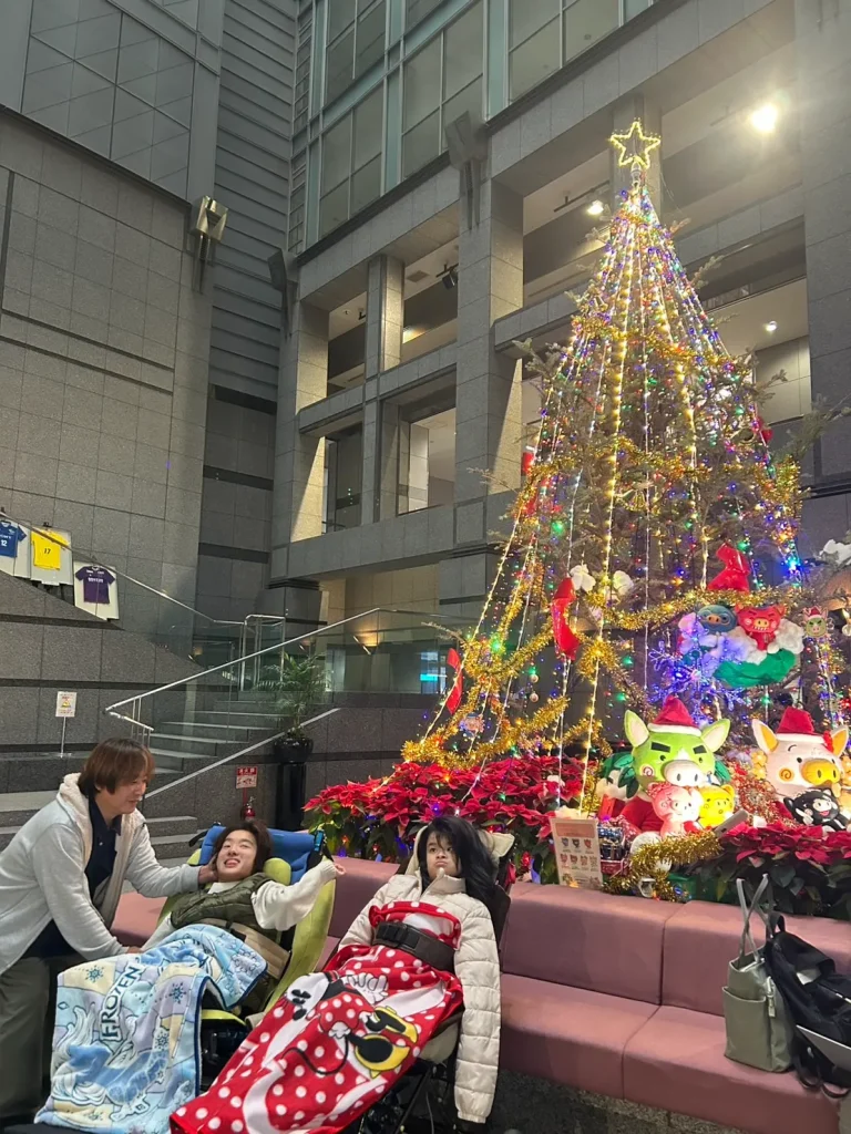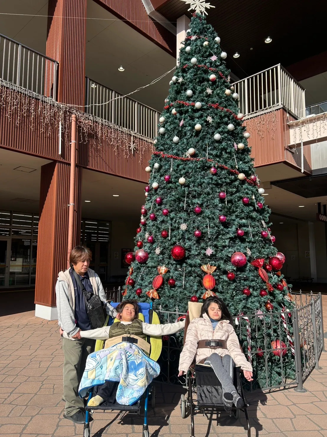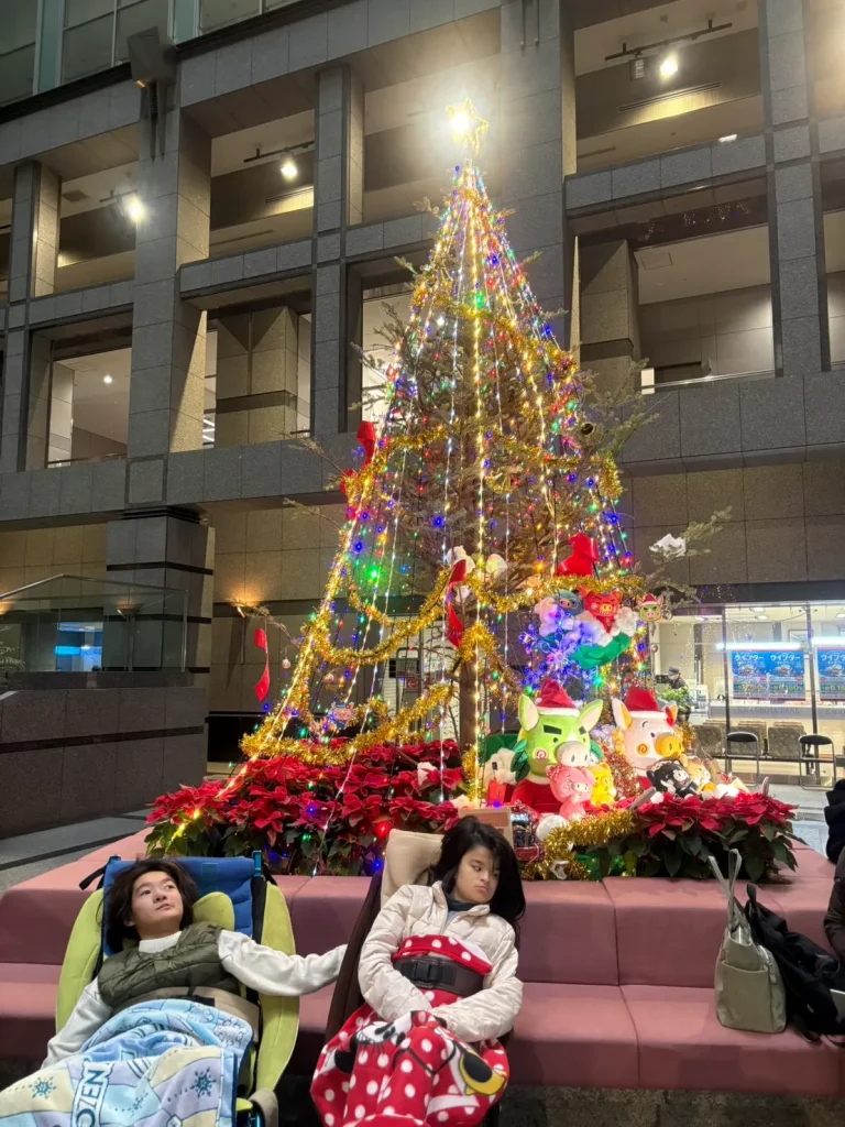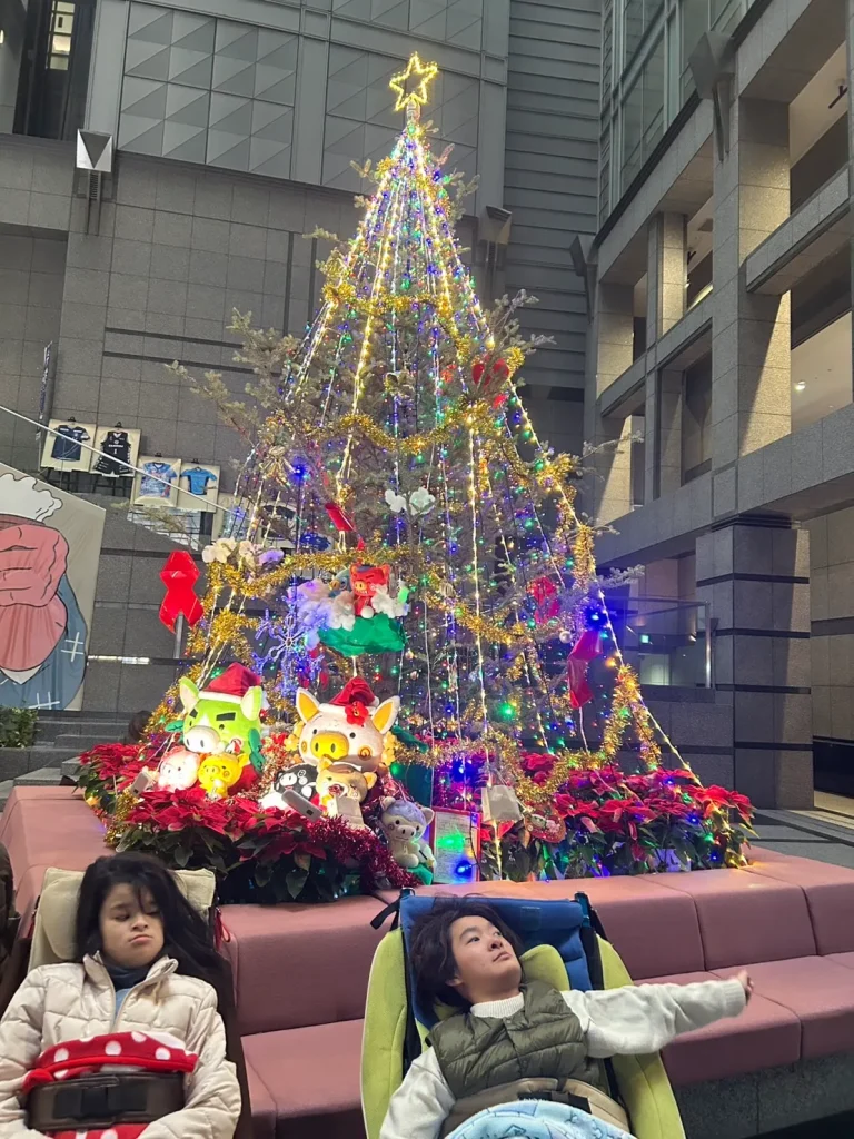 ロビーに飾られた大きなクリスマスツリーに、みんな目をキラキラ✨
