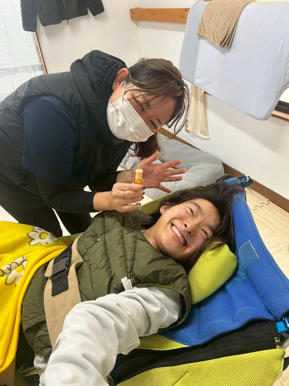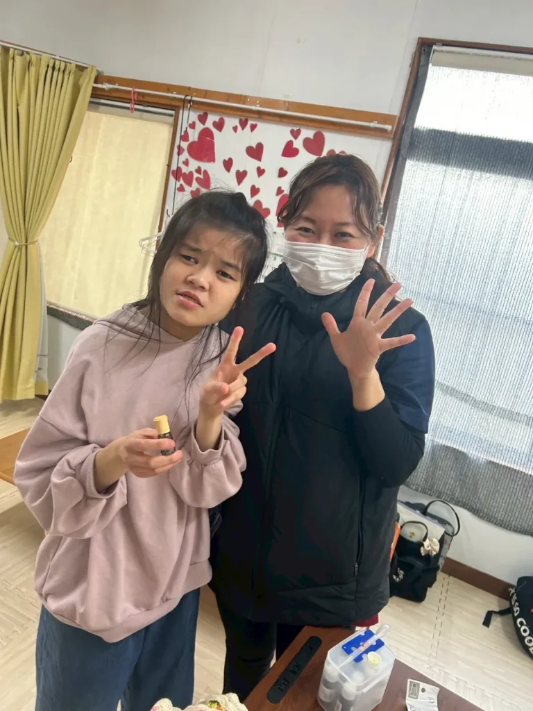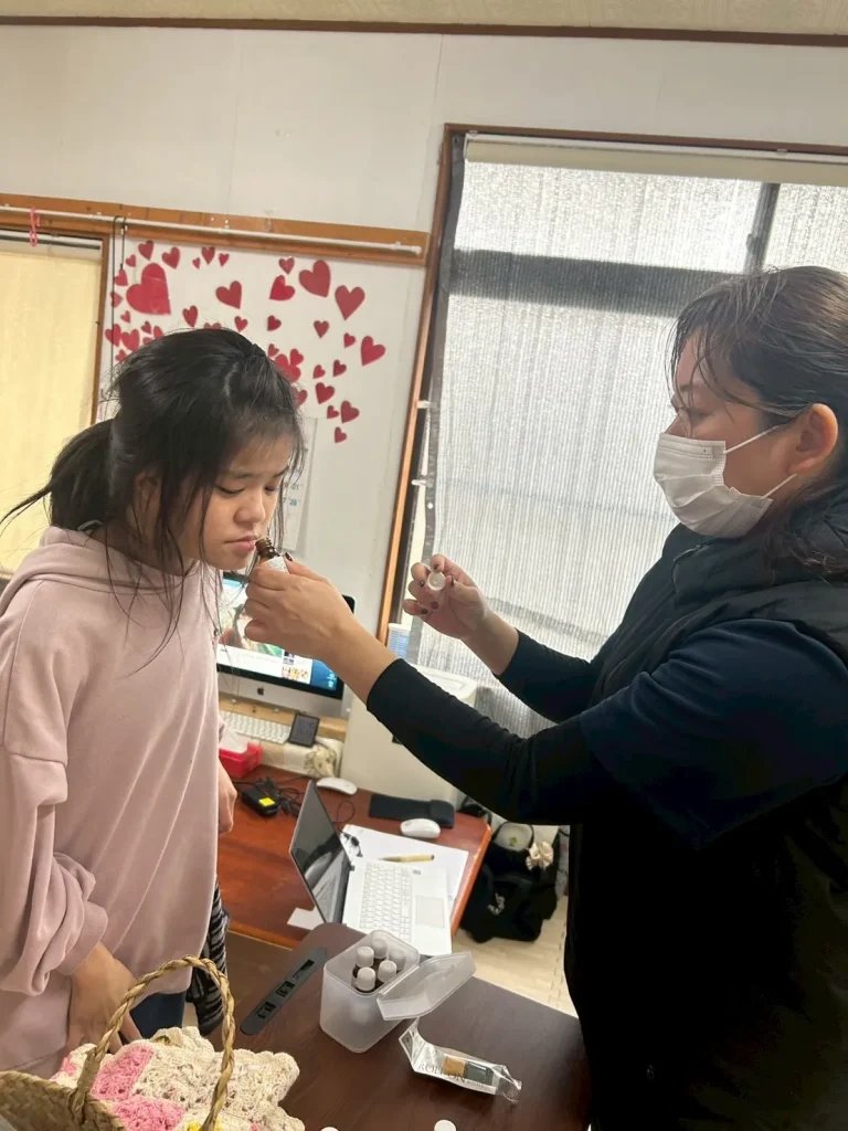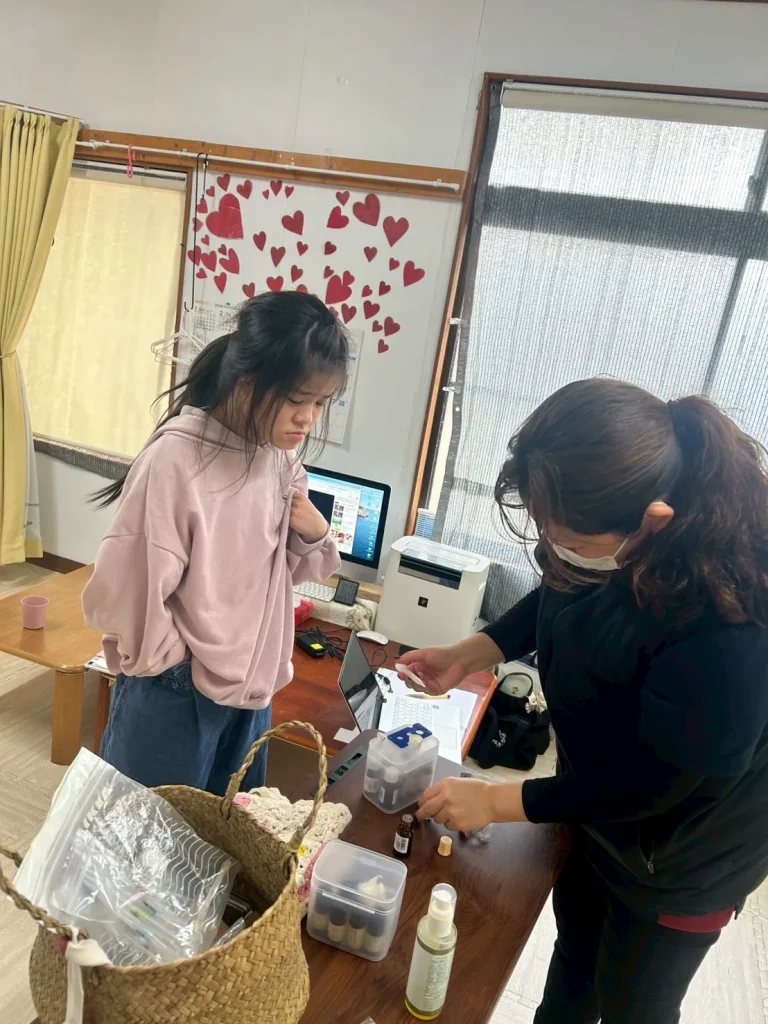 完成したアロマオイルの香りはとても気に入った様子でした。満面の笑顔が見られ、楽しい制作活動となりました。