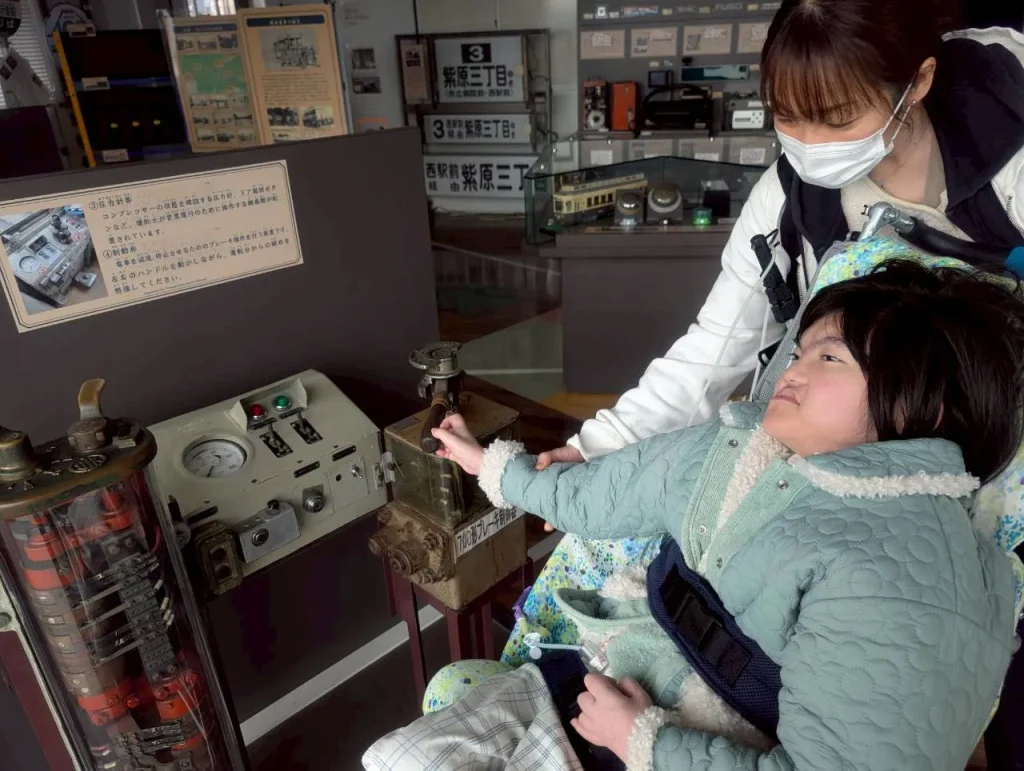 昔の車両の写真や模型を前に、興味深そうな表情で見入る姿がたくさん見られました。