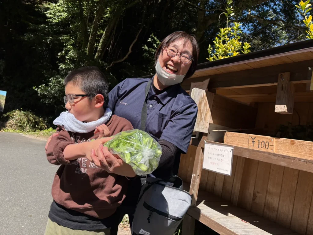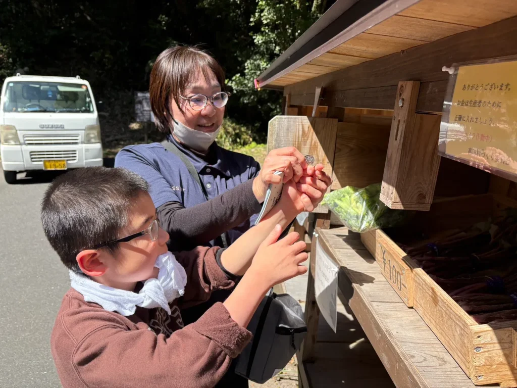 周辺には無人販売もあり、新鮮なお野菜を見ながら買い物も楽しみました。